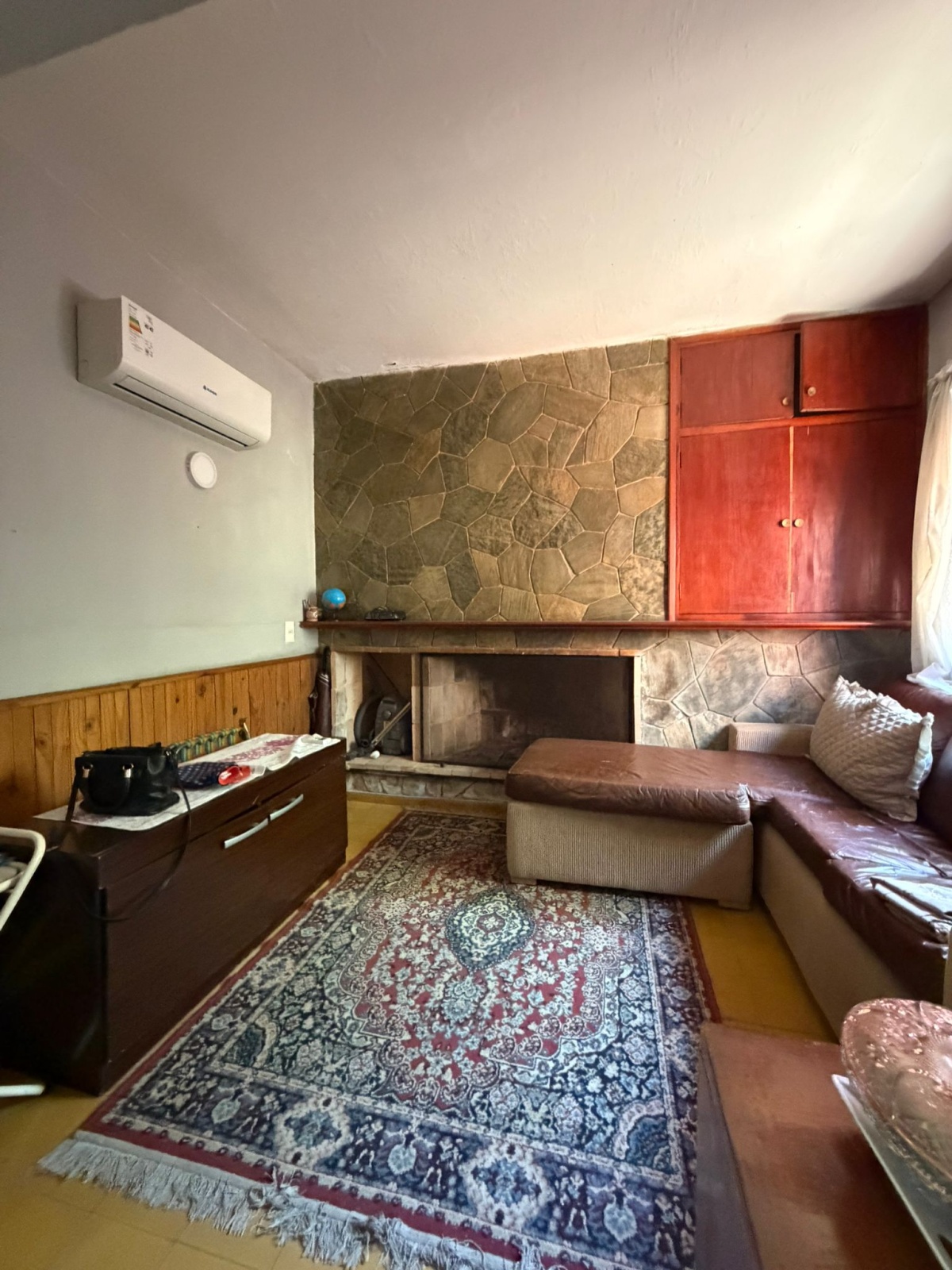 Living comedor espacioso con estufa a leña, ideal para disfrutar en invierno